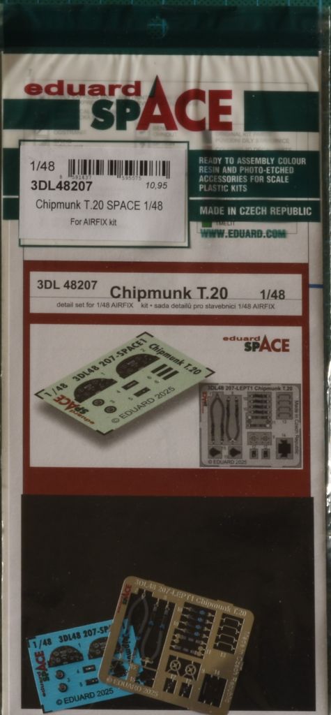 Airfix veröffentlichte sein 1/48-Modell der de Havilland Chipmunk im Jahr 2012. Inzwischen ist ein Rebox mit anderen Liveries erschienen. Der SPACE-Detaillierungssatz von Eduard enthält wie gehabt ein 3D-Decal mit Cockpit-Innendetails…