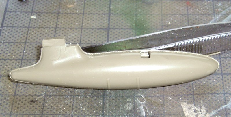 Leider gab es noch ein kleines Malheur. Irgendetwas war unter die Kanzel gekrabbelt und hatte einen leichten Beschlag verursacht. Dieser war sehr leicht zu entfernen, das Abtrennen der Schiebehaube --- welche eigentlich nur mit Gators Glue (eine Art Weißleim) befestigt war --- hat aber diese mechanisch so beansprucht, dass einige Risse entstanden sind. Da mir diese zu auffällig erschienen, habe ich stattdessen eine geschlossene Schiebehaube aus der Dual Combo verwendet. Eine der Britischen Maschinen wird also eine offene Kanzel erhalten müssen .. ein gutes Argument für ein Zubehör Cockpit!