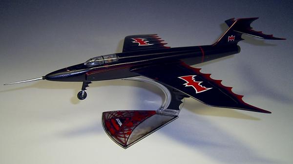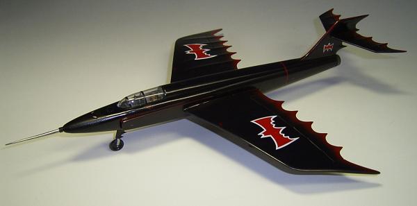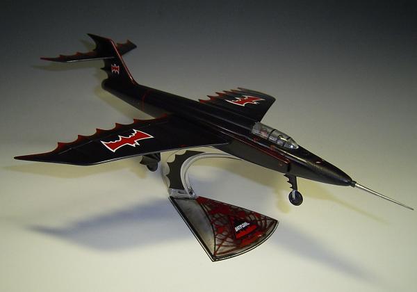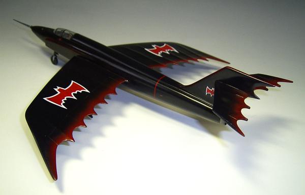 Zum Schluss werden noch einige zusätzliche Decals aus der "Grabbelkiste" (rotes Rumpfband, Hinweise auf Schleudersitze) und die beiliegenden Fledermaussymbole auf das Flugzeug aufgebracht. Die nun fertige Oberfläche wird mittels TAMIYA Model - Wax versiegelt. Das fertige Resultat erinnert etwas wehmütig an die langen Comic reichen Leseabende meiner Schulzeit! Aber auch heute noch interessiert mich das Thema Batman, so dass es ein Wiedersehen mit dem Batmobile geben wird.