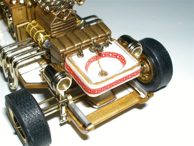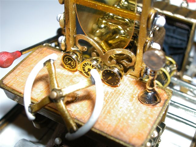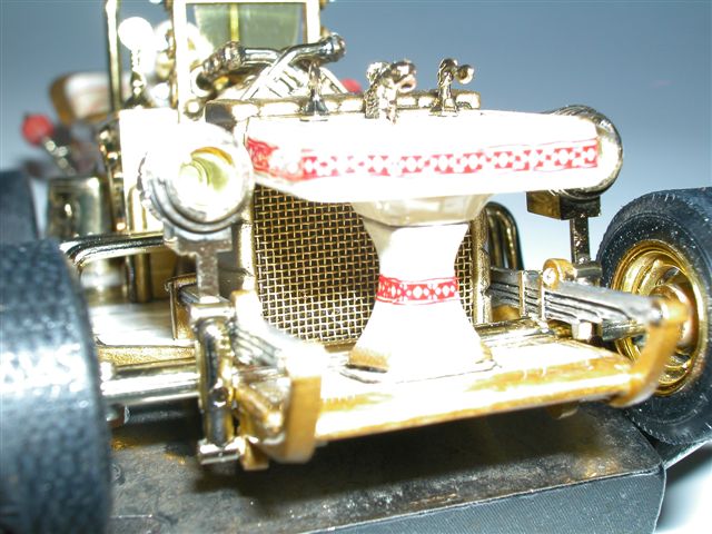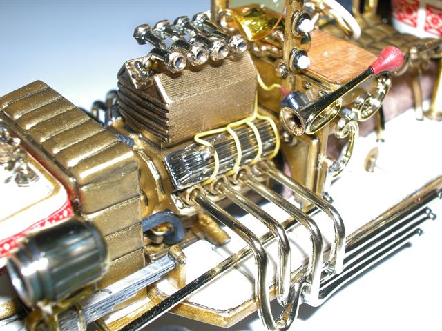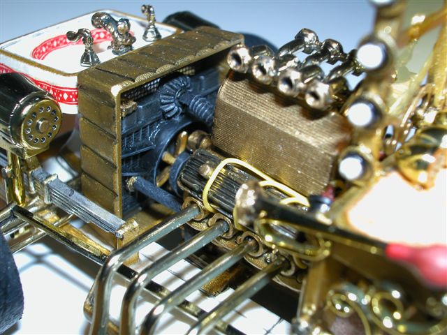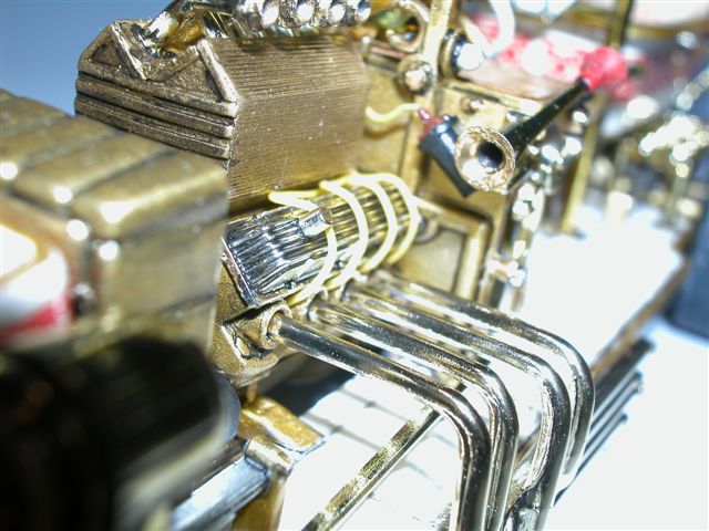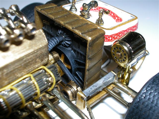 Am Motor wurden Zündkabel verlegt, die vordere Kühlerabdeckung (eigentlich leer!) wurde mit einem Kühler versehen und damit man auch noch später ein wenig sieht, wurde ein Gitter in die Abdeckung eingesetzt.
