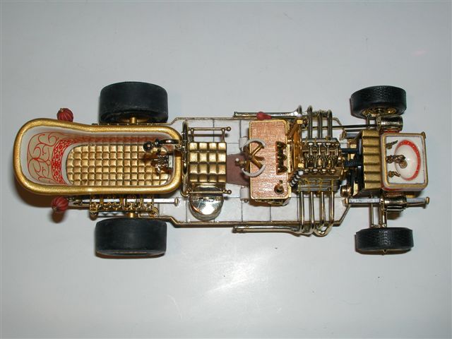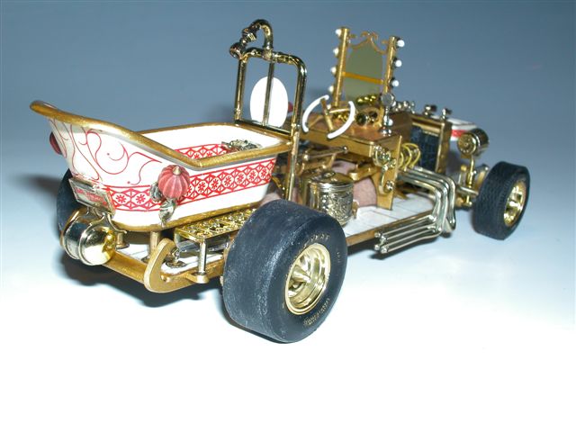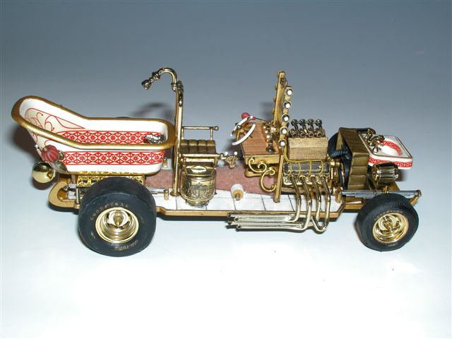 Der Bathtub Buggy ist ein Klassiker unter den Show Cars den ich immer verzweifelt gesucht hatte. Monogram stellte Ende der 60er bis Mitte der 70er Jahre einige hervorragende Show Cars her. Leider verschwanden sie schnell aus den Läden, wobei in Amerika die Bausätze weit mehr Anklang fanden als in Deutschland. Auch der karge Versuch einige Autos wieder aufzulegen scheiterte an den Original Formen. Die waren mittlerweile nicht mehr auffindbar oder zerstört. So wurden in den 80er und 90er einige wenige Show Autos wieder reanimiert. Leider aber nicht mein heiß geliebter Bathtub Buggy!