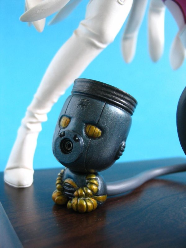 Ich hatte bei YouTube ein Video gesehen, in dem gezeigt wurde, wie genau dieser Bausatz Stück für Stück in der Werkstatt von Kotobukiya entstand; also nach einer gezeichneten Vorlage modelliert, abgegossen, zusammengesetzt und bemalt wurde. Da mir das Design so gut gefiel, wollte ich unbedingt dieses Kit haben... leider waren die Leute von e2046 aus HongKong mit ihren Recasts wieder mal die Einzigen, die sie anboten!
