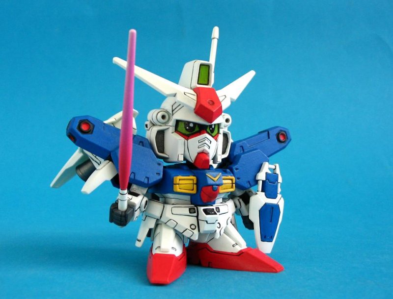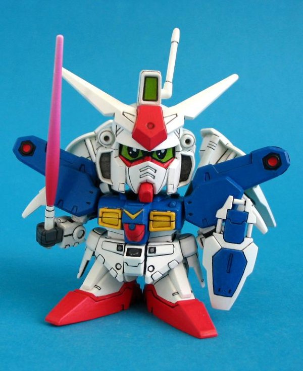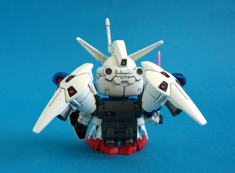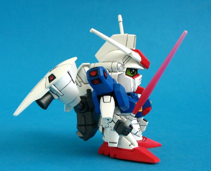 Wie bei Bandai üblich, sind die Einzelteile in den Gußrahmen bereits farbig gespritzt und das ganze Kit innerhalb kurzer Zeit zusammengesetzt. Allerdings habe ich alle Teile richtig verklebt, gespachtelt und natürlich ordentlich bemalt. All dies mit Acrylfarben über einer Grundierung von Citadel. Der SD-Gundam bleibt, Dank etlicher PolyCap-Gelenke, voll beweglich und kann in verschiedene Posen gebracht werden (z.B. zum fotografieren).