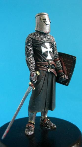 Diese 54mm Resinfigur erwarb ich auf den Hamburger Modellbautagen 2005 bei einem Händler zu einem sehr günstigen Preis. Es handelte sich um einen Restposten der nicht mehr existenten Firma ResiNation...und hätte ich noch etwas mehr Geld dabei gehabt, wer weiss...so musste ich mich auf zwei Ritter aus der Zeit der Kreuzzüge beschränken, wovon dies die erstere ist!