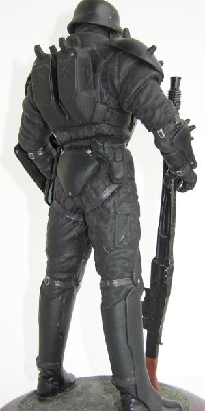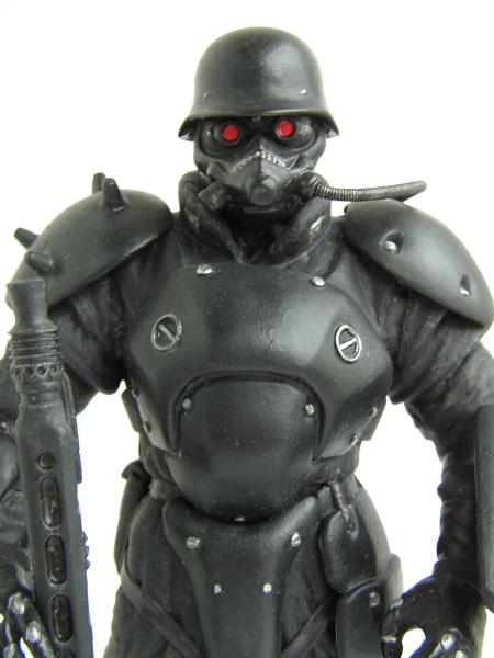 Diese Figur stellt ein Mitglied der Tokioter Sonderpolizeitruppe "Cerberus Panzer-Cops" dar, die in dem japanischen Animationsfilm "Jin-Roh" eine wichtige Rolle spielen. Einsatzgebiet dieser, mit deutschen Waffen ausgerüsteten Einheit ist die Bekämpfung von Terroristen und Aufständischen in Tokio kurz nach dem 2.Weltkrieg (allerdings wurde hier davon ausgegangen, daß Deutschland und Japan den Krieg nicht verloren haben ... mit allen daraus resultierenden Konsequenzen für den geschichtlichen Verlauf). In dem Manga (jap. für Comic), der als Vorlage für den Film diente, wird das besonders deutlich, alle Fahrzeuge, Fluggeräte und Waffen sind deutscher Bauart, frei nach dem Motto, was wäre wenn ... als Beispiel seien etwa Hubschrauber von Heinkel genannt!!!