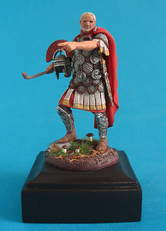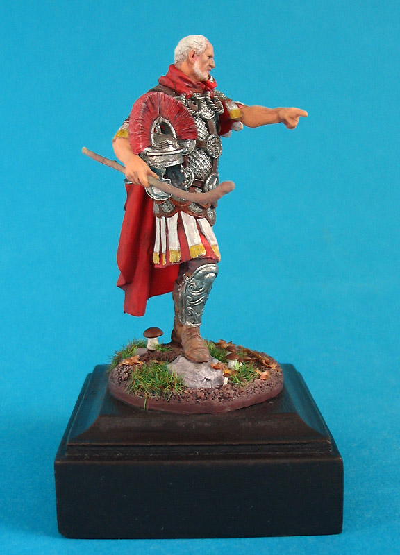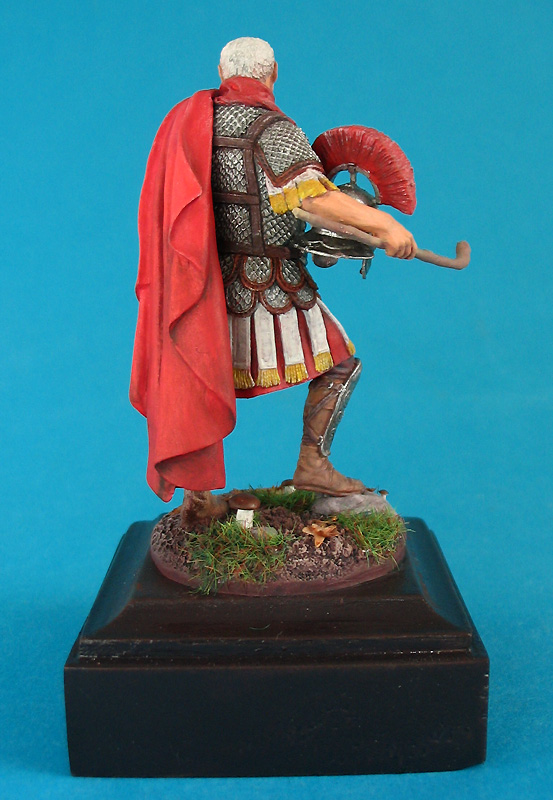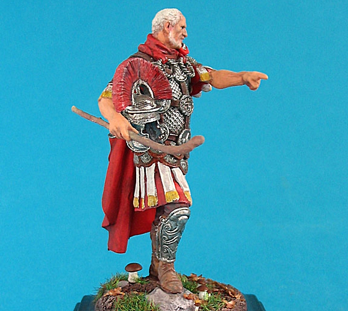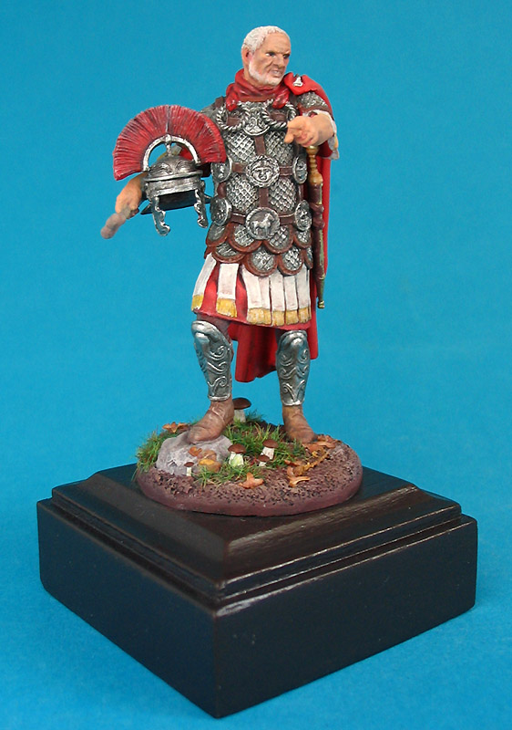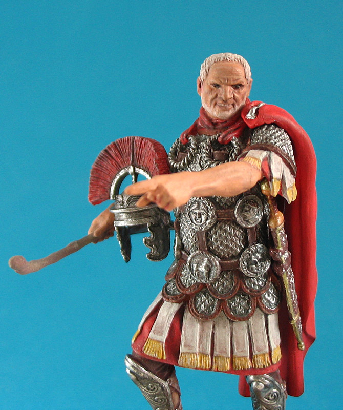 Als Vorlage für diese ansprechende Zinnfigur eines römischen Centurio wählte die italienische Firma "Soldiers" eine antike Grabstele, welche sich im Museum von Verona befindet. Zu sehen ist ein schon etwas älterer Herr in Prunkrüstung, versehen mit allen Insignien eines hochdekorierten Kämpfers der römischen Armee...