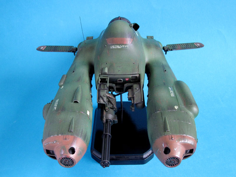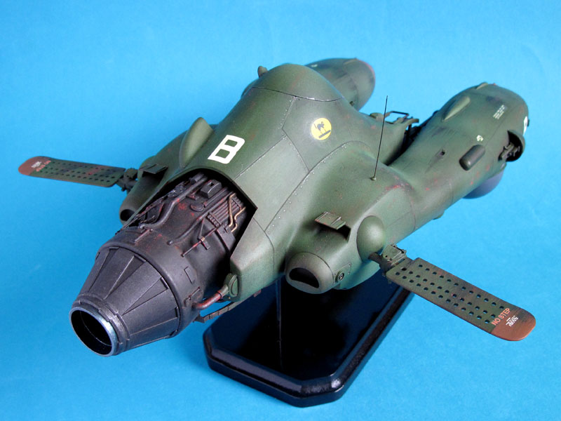 Apropos "schweben"... die Antigravitations-Aggregate dienen beim Falken lediglich dazu, das Gefährt vom Boden zu heben. Der Vortrieb erfolgt auch weiterhin mittels eines konventionellen Düsentriebwerkes (Yakultflasche!) und die Steuerung durch die "Paddel". Vorteil einer solchen Maschine, sie kann praktisch in der Luft stehen bleiben und fast überall starten und landen ohne eine feste Startbahn zu benötigen. Sind die Aggregate eingeschaltet, sollte ein einzelner Techniker des Bodenpersonals in der Lage sein, den Falken ohne große Kraftanstrengung per Hand auf dem Flugfeld hin und her zu bewegen, was schwere Technik überflüssig machen könnte.