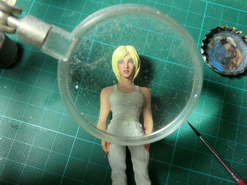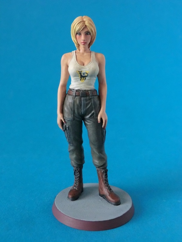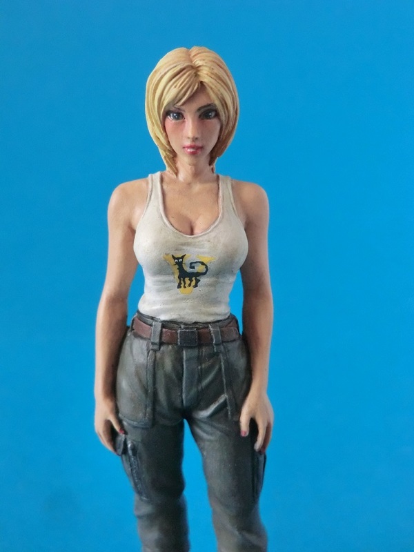 Das Mädel kann zusammen mit den Kampfanzügen des Ma.K. Universums präsentiert werden, macht aber auch als Einzelobjekt eine gute Figur. Bemalt habe ich die Pilotin mit Acrylfarben über einer Sprühgrundierung von Citadel.