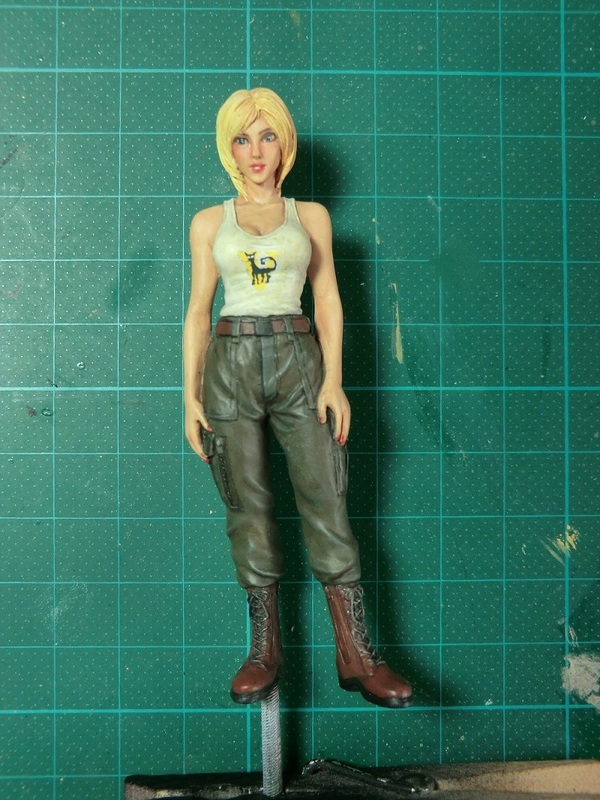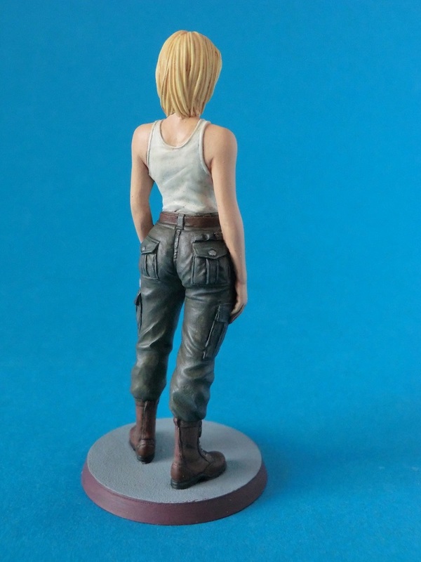 Heute möchte ich mal die erste Figur vorstellen, mit der im Jahr 2007 alles begann. Es ist eine stehende Pilotin der „Independent Mercenery Army - IMA“ und gehört damit zur englisch sprachigen Fraktion im Maschinen Krieger Universum.