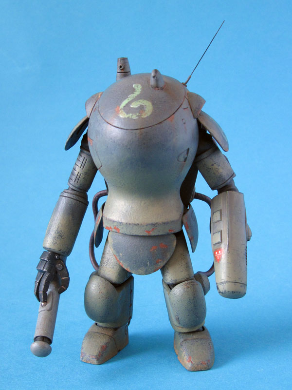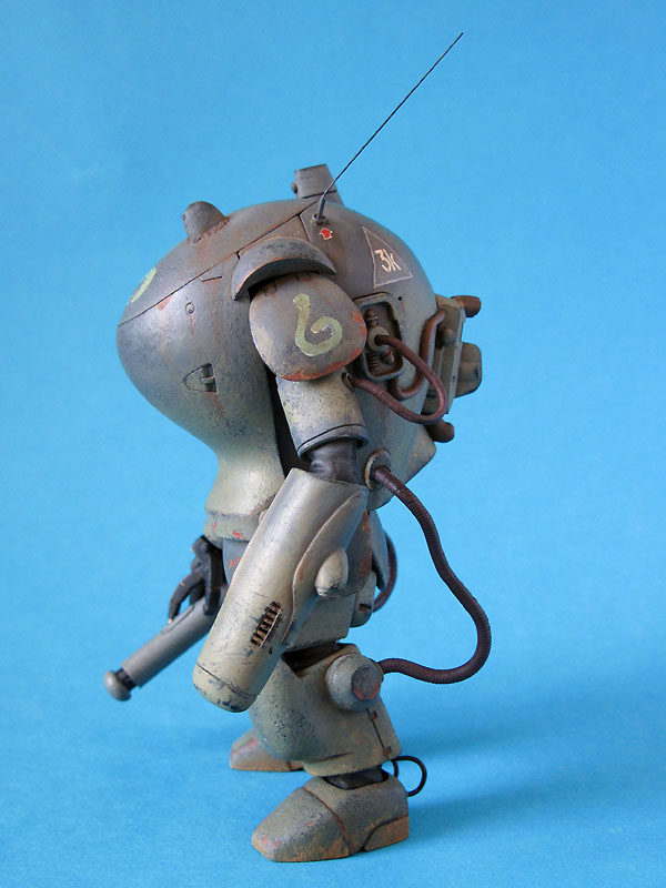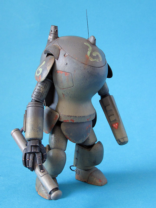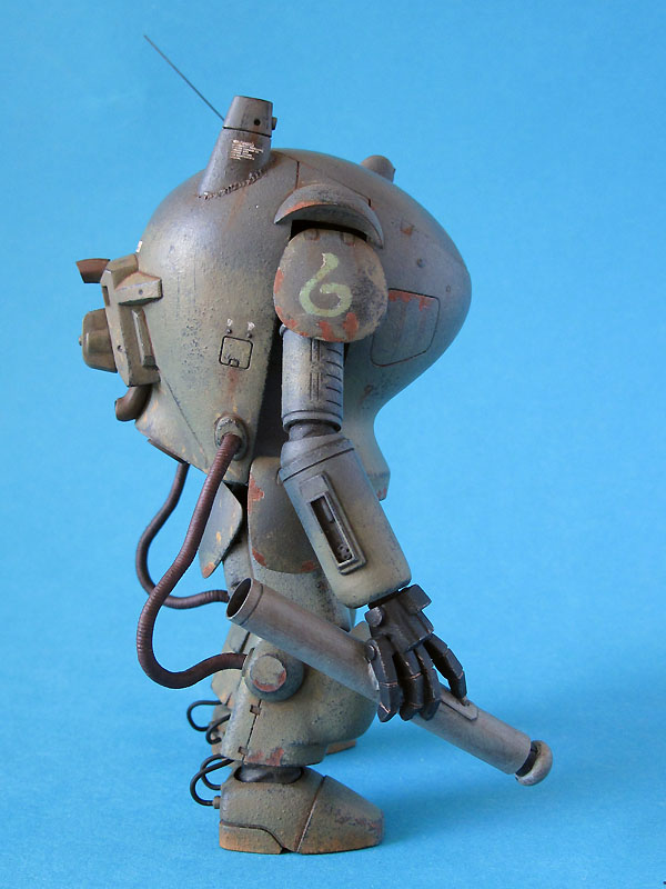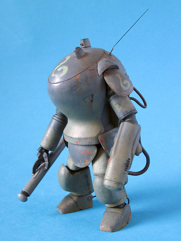 Zum Modell: Dieser MK 1B entstand als Umbau aus dem normalen SAFS Modell von WAVE. Hinzugefügt wurde lediglich der neue Laserarm, die Knie und die Panzerfaust. Den Laser hatte ich noch in meiner Grabbelkiste liegen. Die Knie entstanden aus Milliput, die Panzerfaust aus Evergreen-Rohr und dem Turbinenkopf eines Hubschraubers.
