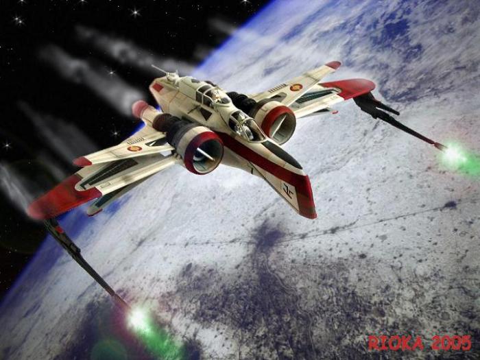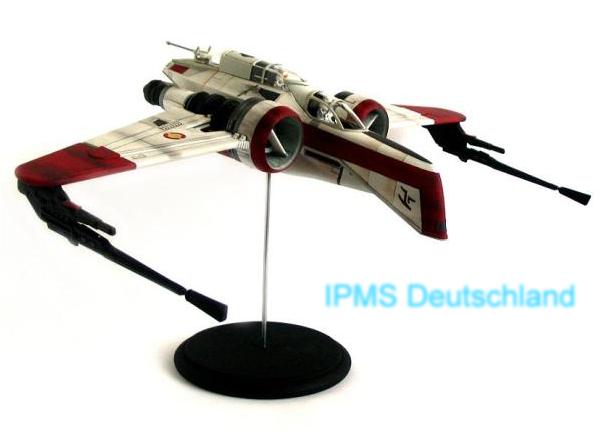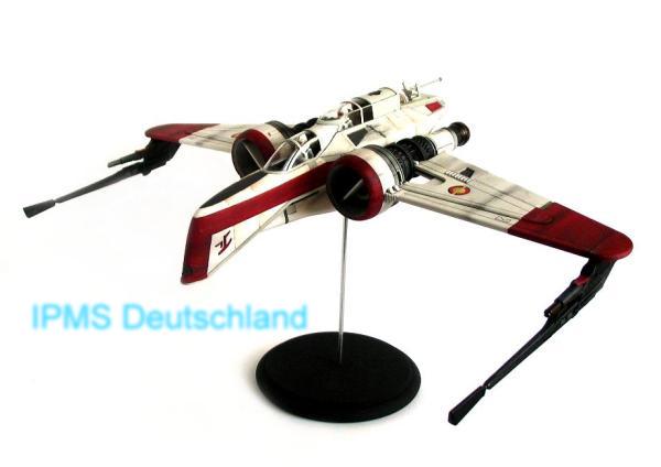 Unschwer ist hier zu erkennen, daß dies der Vorläufer des später in Teil 4-6 auftauchenden X-Wing ist, noch nicht so schnittig, aber bereits mit klappbaren Flügeln und Laserwaffen an deren Enden.