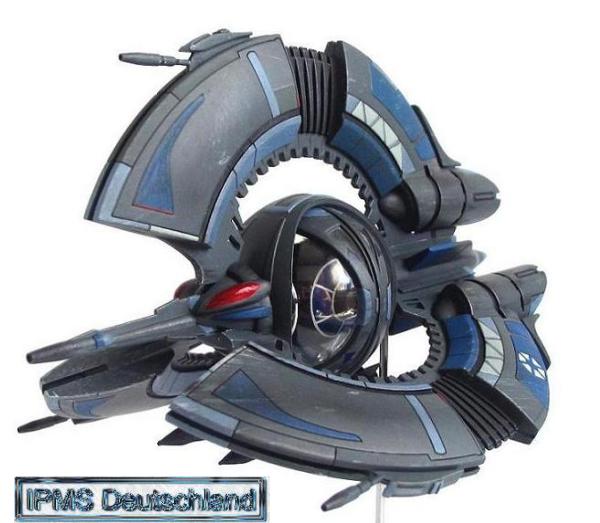 Auch der Tri-Fighter von Revell kommt als Easy Kit in die Läden, bereits farbig bedruckt und innerhalb kurzer Zeit fertig zusammen gesetzt. Der "Kern", der den Computer enthält, ist vorbildgetreu in alle Richtungen frei beweglich. Die Plastikteile des letztendlich 18,5 cm langen Schiffes sind robust und Dank durchdachter Steckverbindungen am Ende kaum störende Nähte der Einzelteile zu sehen.