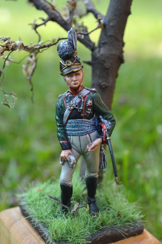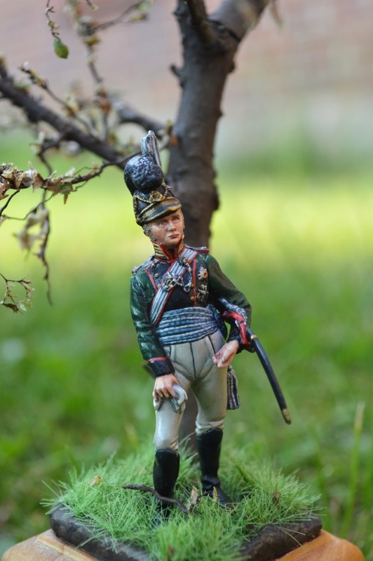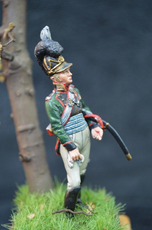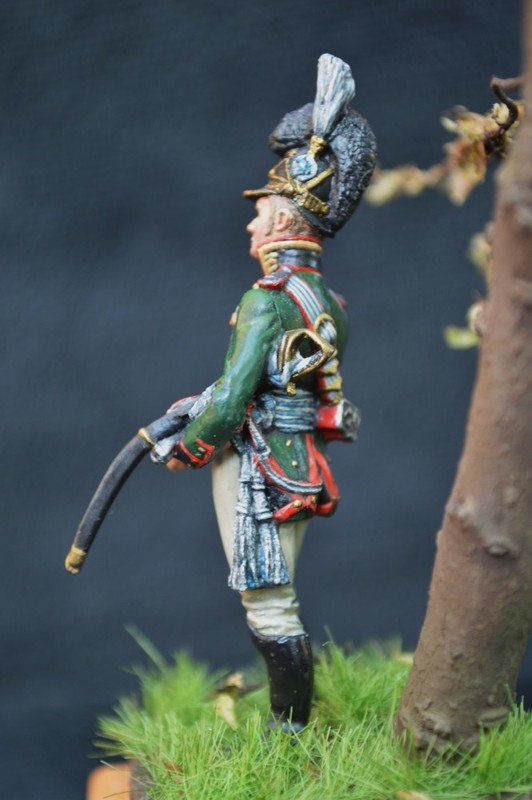 Ulrich Puchala ist mir schon mehrfach positiv durch seine Figuren aufgefallen. Sein Angebot beinhaltet viele deutsche Soldaten aus verschiedenen Epochen, die auch von anderen Herstellern vertrieben werden. Als ich beim Schmökern in meinem Stammmodellbauladen diese Figur entdeckte, konnte ich daher nicht widerstehen. Der Bau ging sehr schnell voran, da lediglich 3 Teile vorliegen, wovon eins die Vignette darstellt. Bemalt wurde die Figur ausschließlich mit Acrylfarben der Marke Vallejo. Leider habe ich mit der glänzenden Oberfläche grade bei den Grüntönen zu kämpfen gehabt, was die Bilder auch deutlich zeigen.