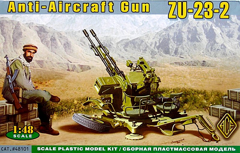 Bausatz: Vor einigen Wochen habe ich diesen Bausatz überraschend in der Ankündigung eines Onlinehändlers gefunden und kurze Zeit später via Onlineauktion auch gekauft. ACE aus der Ukraine ist ja schon länger als Produzent von Modellen sowjetisch-russischer Technik insbesondere in 1/72 bekannt, nun gibt es also die leichte Standard-Flak (nach 1960) der sowjetischen Einflusszone im Maßstab 1/48.