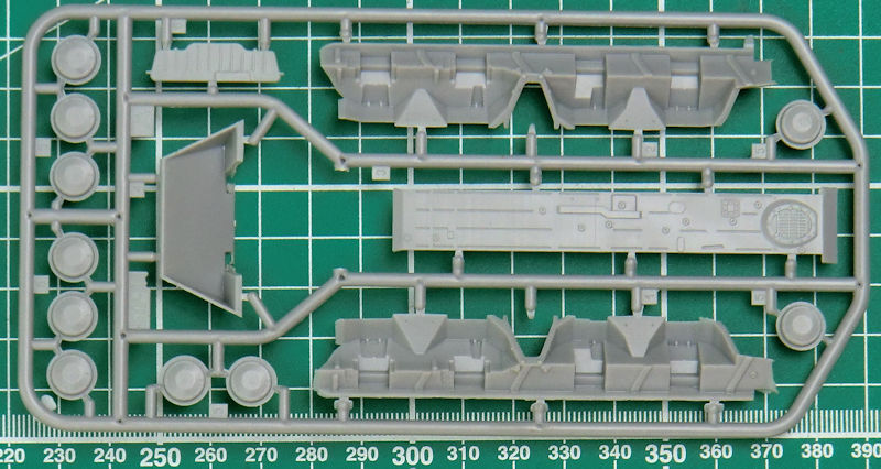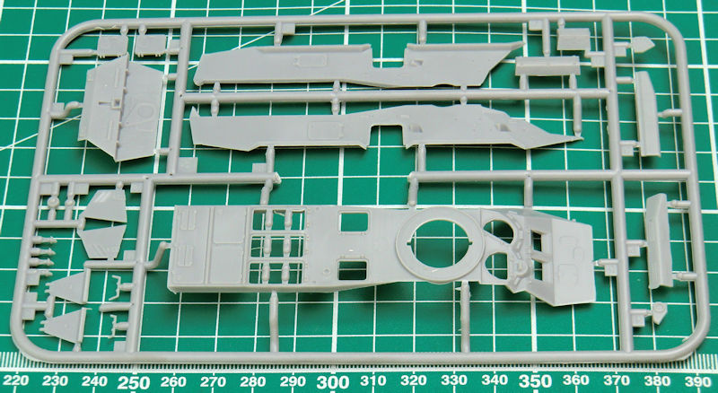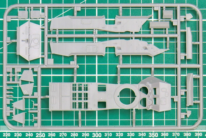 Ein paar Teile sind für andere Versionen bestimmt und wandern in die Restekiste. Der Bau beginnt mit dem sehr detaillierten Fahrwerk. Hier hat sich der Konstrukteur etwas ausgetobt. Der detailverliebte Modellbauer kann sich bedanken. Dafür besteht der eigentliche Panzerraum aus wenigen Teilen. Das vereinfacht den Zusammenbau. Leider lassen sich die Ausstiegsluken nicht offen darstellen, denn innen sind keine Details vorhanden.