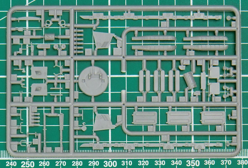 Bausatz: ACE aus der Ukraine hat hier mal ein aktuelles Vorbild aus dem eigenem Land als Short-Run-Bausatz im Maßstab 1/72 umgesetzt. In dem typischen Stülpkarton befinden sich gut verpackt sechs hellgraue Spritzgussrahmen mit 219 Einzelteilen, acht Gummireifen, ein Fotoätzteilbogen, ein Decal und die übliche Bau- und Bemalungsanleitung.