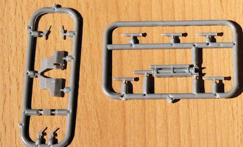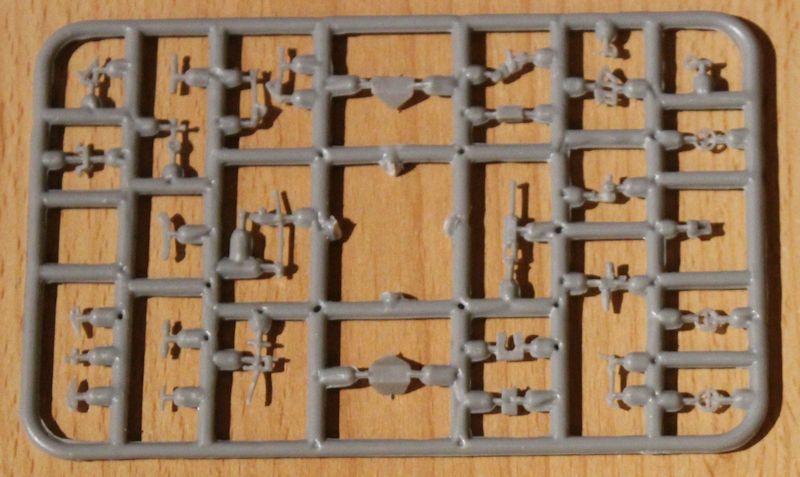 Bausatz: In dem schön gestalteten Stülpkarton befinden sich die Bauanleitung und vier kleine hellgraue Gießäste. Abziehbilder liegen nicht mit bei. Die Teile sind in der typischen ACE-Qualität wiedergegeben. An vielen Teilen befinden sich Grate und Fischhäute die vor dem Zusammenbau entfernt werden müssen. Leider sind die Teile auch an vielen Stellen mit dem Gießast verbunden, so dass man beim Heraustrennen sehr vorsichtig sein muss, damit die kleinen Teile nicht davonspringen oder zerbrechen.