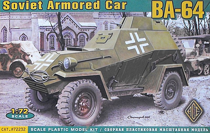 Vorbild: Der BA-64 wurde ab 1942 in der Roten Armee als Aufklärungs- und Verbindungsfahrzeug eingesetzt. Er basiert auf dem Fahrgestell des sowjetischen Geländewagens GAZ-64. Der Aufbau der Panzerung erinnerte deutlich an deutsche Panzerspähwagen. Die Ausrüstung variierte recht stark. So hatten einige BA-64 ein Funkgerät, einige das 12,7-mm-DSchK-MG, andere 14,5-mm-Panzerbüchsen oder gar deutsche 20-mm-MK. Es gab auch eine Version für den Schienenbetrieb. Insgesamt wurden ca. 3.500 Exemplare des BA-64 gefertigt. Einige Fahrzeuge erbeutete auch die Wehrmacht an der Ostfront.