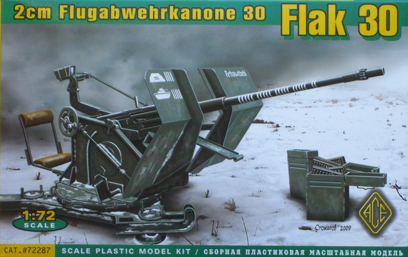 Vorbild: Diese deutsche Waffe aus der Zeit des WK II und davor entstand aus einer Entwicklung der Kriegsmarine. Die C/30 genannte Waffe wurden dann bei Rheinmetall zur Flak 30 weiterentwickelt. Sie erhielt ein Schutzschitz und eine einachsige Protze. Da die Feuergeschwindigkeit mit 120 Schuss/Minute nicht ausreichend war, wurde daraus nach einigen Verbesserungen später die Flak 38.