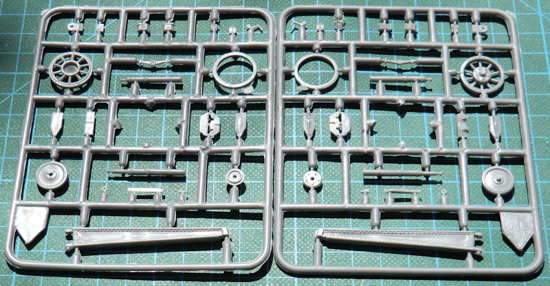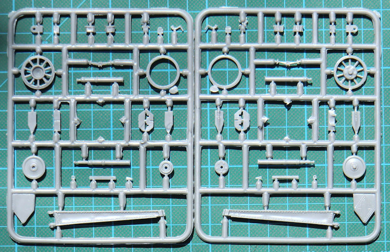 Beim Betrachten der Bauteile wird klar: Hier ist etwas mehr Arbeit notwendig. Es gibt neben Graht auch ein paar Sinkstellen. Ein großer Schwachpunkt ist hier das eigentliche Kanonenrohr samt Mündung. Hier sollte man ein Alternativteil bevorzugen.