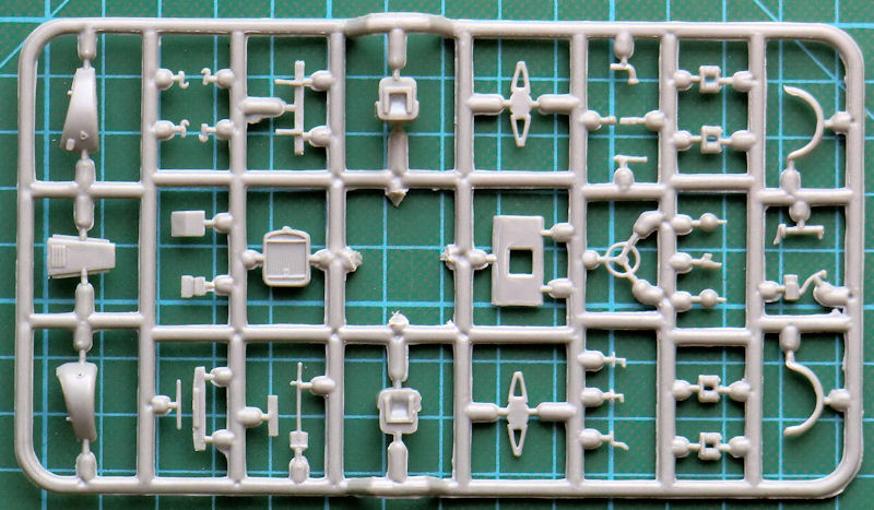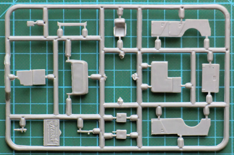 Bausatz: In dem attraktiven praktischen Stülpkarton befinden sich gut verpackt drei hellgraue Spritzlinge mit 63 Teilen, ein kleiner Decalbogen und die typische Bauanleitung. Es handelt sich hier um einen Short-Run-Bausatz mit einer recht beschränkten Auflage. Gedacht ist er für die sehr fortgeschrittenen Modellbauer. Diese sollten auch nicht vor einer Feile oder Spachtelmasse zurückschrecken.