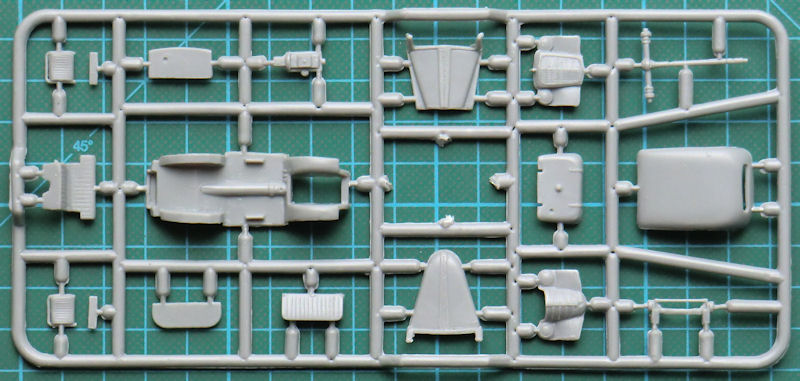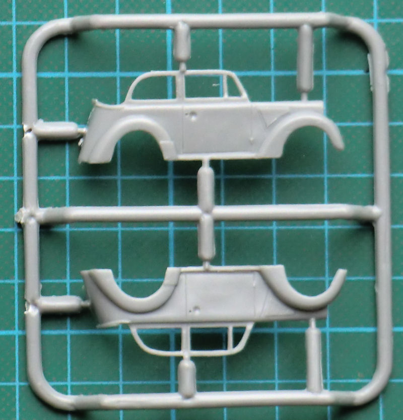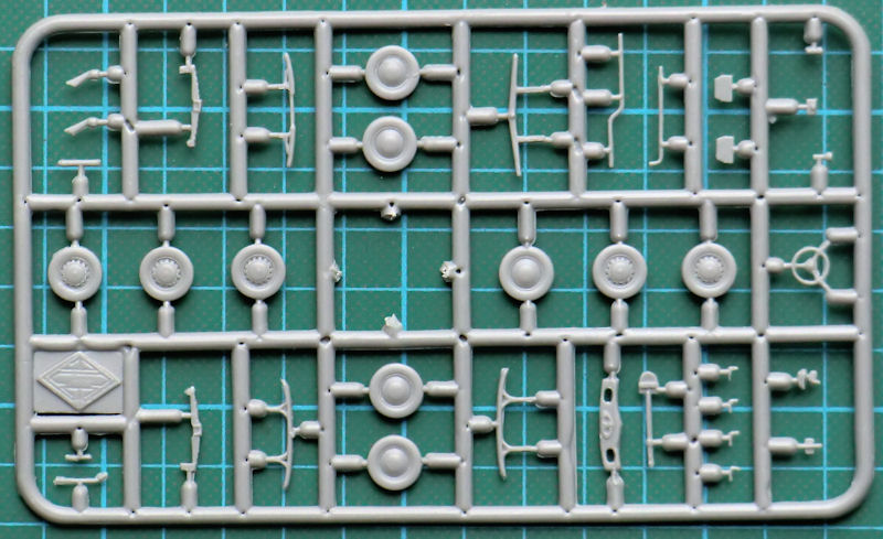 Bausatz: Wie man unschwer aus dem Vorbildteil erkennen kann, geht es hier um ein 1/72-Modell des Opel Olympia in der Ausführung als Cabrio-Limousine. Diesem Short-Run-Kit verdanken wir ACE und es ist kaum zu erwarten, dass dieser Typ jemals in Großserie bei einem anderen Hersteller erscheint. In dem kleinen praktischen Stülpkarton befinden sich gut verpackt vier graue Spritzgussrahmen mit 58 Teilen, einem Decalbogen und der Bauanleitung. Ein paar Teile sind für die Restekiste. Es gibt bei den Spritzgussteilen ein wenig Graht.