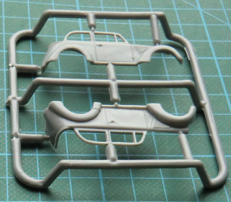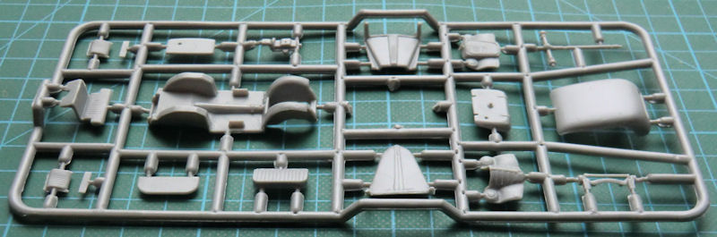 Der Bau beginnt hier mit dem Fahrgestell. So gibt es neben der Nachbildung des Antriebsstrangs auch die Unterseite des Motor-Getriebe-Blocks. Innen gibt es natürlich Sitze, das Armaturenbrett, dein Schalthebel und das Lenkrad. Alternativ kann das Verdeck offen oder geschlossen montiert werden. Entsprechend muss man auch die Detaillierung/Bemalung im Inneren vorantreiben. Im Heckbereich gibt ein paar Unterschiede bei der Montage zu beachten.