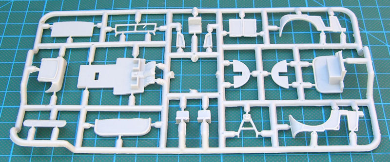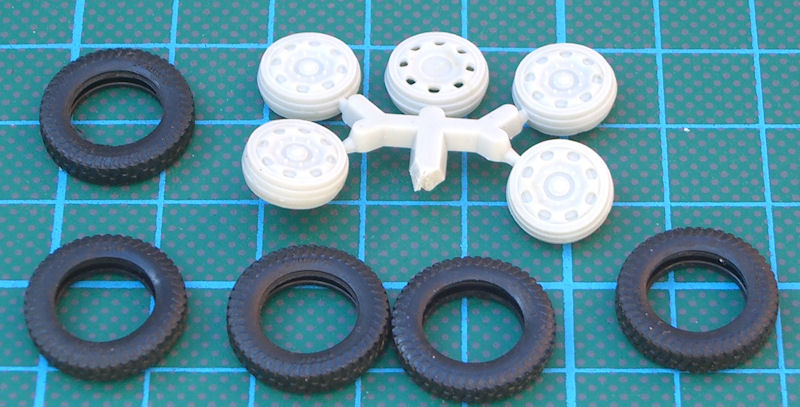 Bausatz: ACE aus der Ukraine hat immer wieder gute Ideen für Fahrzeuge im Maßstab 1/72. Im typischen Stülpkarton befinden sich gut verpackt drei hellgraue Spritzlinge mit 50 Teilen sowie fünf Felgen, fünf Gummireifen, die übersichtliche Bauanleitungen und ein kleiner Decalbogen.