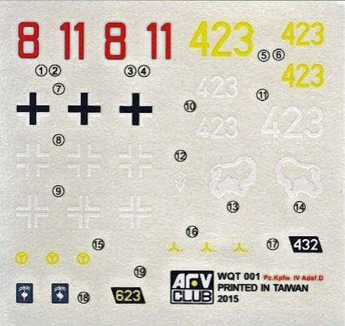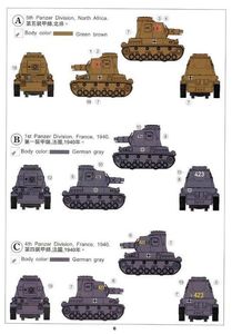 Bemalung: Die beigelegten Abziehbilder sind für fünf verschiedene Fahrzeuge vorhanden. Farbangaben erfolgen für diverse Hersteller.