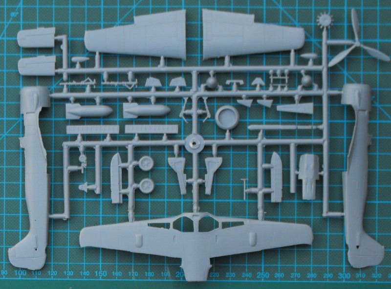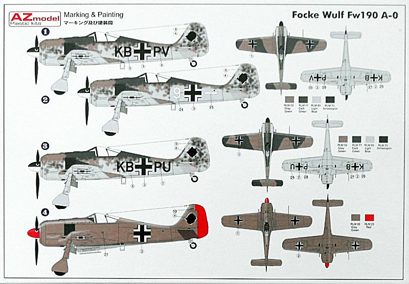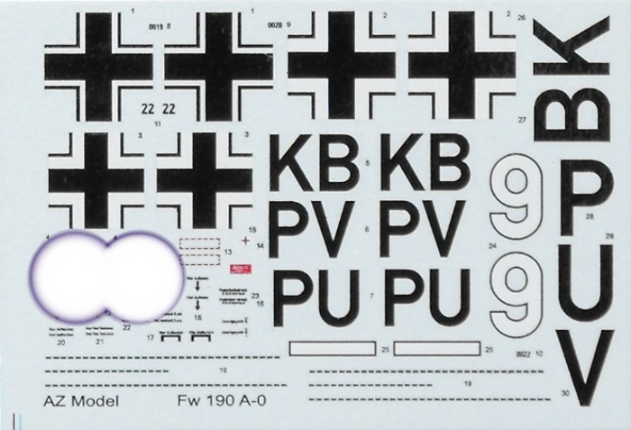 Bausatz:Die Vermutung lag nahe, dass es sich hierbei um den ehemaligen Sword-Bausatz der Fw 190A-1 handelt. Dem ist nicht so. Es wurde aber auf die gleichen Daten bzw. auf das gleiche Urmodell zurückgegriffen. Alle Bauteile sind identisch mit den anderen Bausätzen der frühen 190 von AZmodel