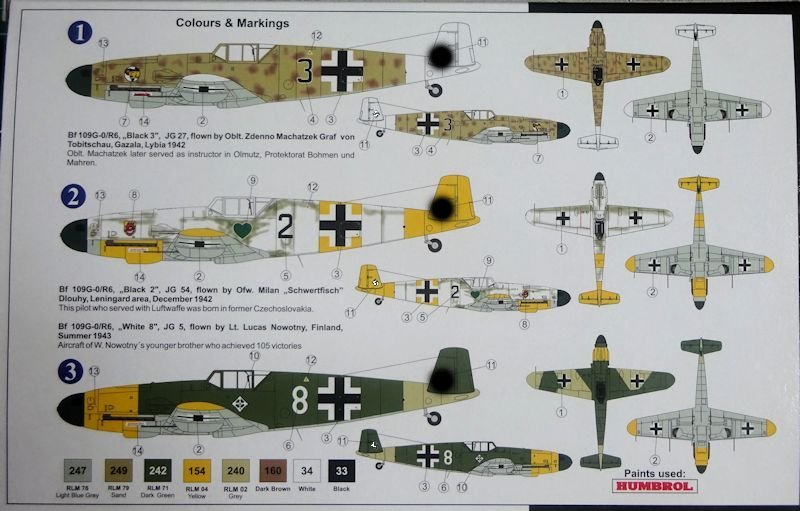 Fazit: Das Modell Bf 109G ist sehr gut. Die Abziehbilder sind mit einigen Änderungen auch für reale Maschinen geeignet. Diese Variante ist dem absoluten 109-Fan zur Vervollständigung seiner Sammlung zu empfehlen.