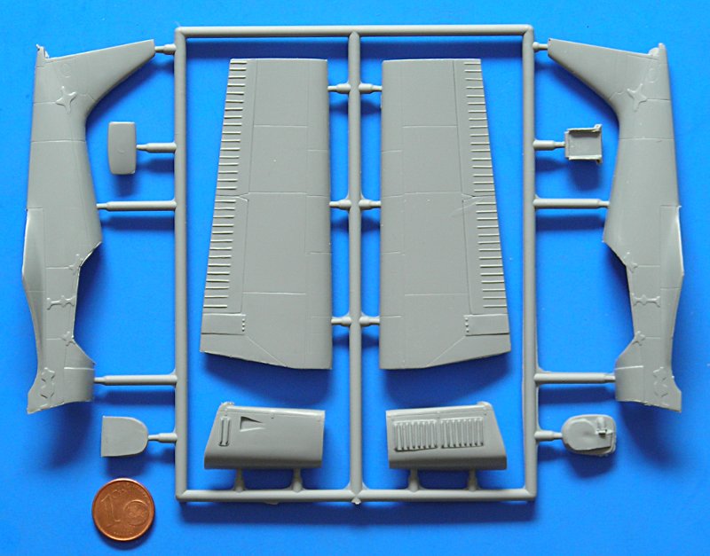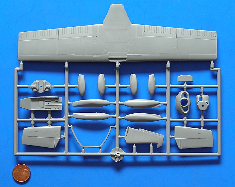Da das Thema Kunstflug modellbauerisch einen recht eingeschränkten Interessentenkreis haben dürfte, ist der Bausatz in bekannter "short run"-Manier ausgeführt. Der Inhalt der Kiste sieht wie ein zerteilter Spritzrahmen aus, daher ist es recht schwierig zu definieren wie viele davon nun wirklich beiliegen. Die Teile sind wie schon die Pitts Special und gar nicht mal so übel. Zumindest sind sie glänzend, was die Farbgebung in poliertem Aluminium erleichtern sollte ... wenn denn nicht allzu viel Spachtel- und Schleifarbeit anfällt. Die Kabinenhaube habe ich gleich nach Öffnen der Schachtel wegen der Gefahr des versehentlichen Abbrechens vom Gussast befreit (PE-Säge), geschliffen/poliert und in Klear "gebadet". So macht sie dann einen ordentlichen Eindruck.