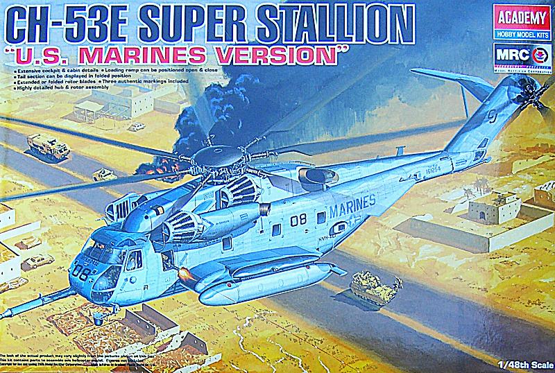 Aufgrund einer Army Ausschreibung baute Sikorsky einen CH-53D zum Prototypen YCH-53E um. Dieser erhielt gegenüber dem Ausgangsprodukt ein drittes Triebwerk, einen Siebenblattrotor und einen verlängerten Rumpf (3,2 m). Zusätzlich wurde der Hecktor um 20 Grad nach links geneigt und das ganze Heck vergrößert. Diese Maschine flog erstmals 1975. Letztendlich beschaften die US Marines ab 1981 über 100 Maschinen und statteten damit 5 Schwertransportstaffeln aus. 1983 erfolgte der ersten Kampfeinsatz im immer noch aktuellen Krisengebiet Libanon. Seit dem stehen die Echos im täglichen Einsatz im Irak, Afganistan und vielen anderen Krisenherden dieser Welt, wofür die Möglichkeit der Luftbetankung sehr hilfreich ist. Dabei bewährten sie sich bravourös mit ihrer großen Transportkapazität. Fast jedes Ausrüstungstück im Inventar der Marines, mal abgesehen vom M1 Abrams, kann der "Super Hengst" im Laderaum oder als Aussenlast transportieren.