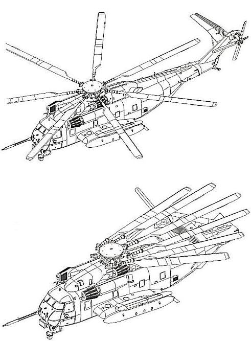 Vorbild: Die CH-53 Familie steht seit ihrem Debüt im Jahre 1965 im harten Einsatz auf der ganzen Welt. Dabei wird der immer noch größte Hubschrauber im Westen momentan nur von den USA, Deutschland und Japan genutzt. Insbesondere bei den US Marines ist dieses Gerät im harten Einsatz und stellt ein Kernelement einer Landungsstreitmacht da. Daher planten die Sikorsky Ingenieure schon früh eine dreimotorige Version, wenn auch anfangs noch für den kommerziellen Markt als S-65. Man erkannte allerdings auch den Bedarf für die Streitkräfte, die zivile Variante wurde nicht weiter verfolgt.