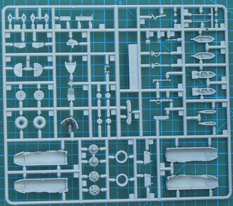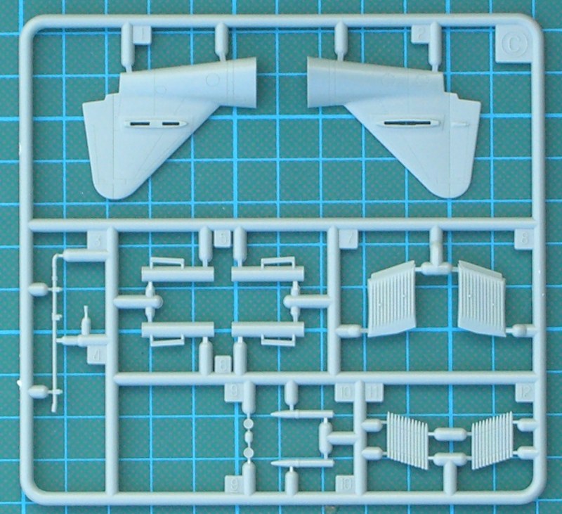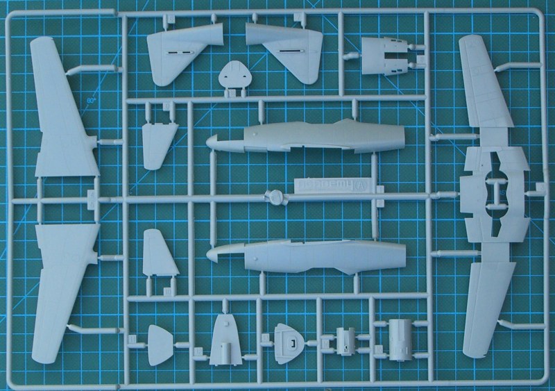 Als ich den Karton der Messerschmitt von ACADEMY das erste Mal sah vermutete ich fast ein 1/48er Bausatz. Klar, es fand sich ein Bausatz in 1/72 in den sehr stabilen zweiteiligen (!) Karton. Es befinden sich darin drei hellgraue Spritzlinge die den Karton gut ausfüllen. Hinzu kommt ein Spritzling mit Klarsichtteilen. Letzterer enthält u.a. eine dreiteilige Kanzel. Diese kann dann in geöffneter oder geschlossener Position montiert werden.