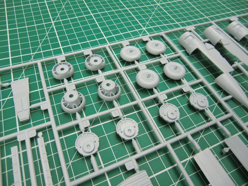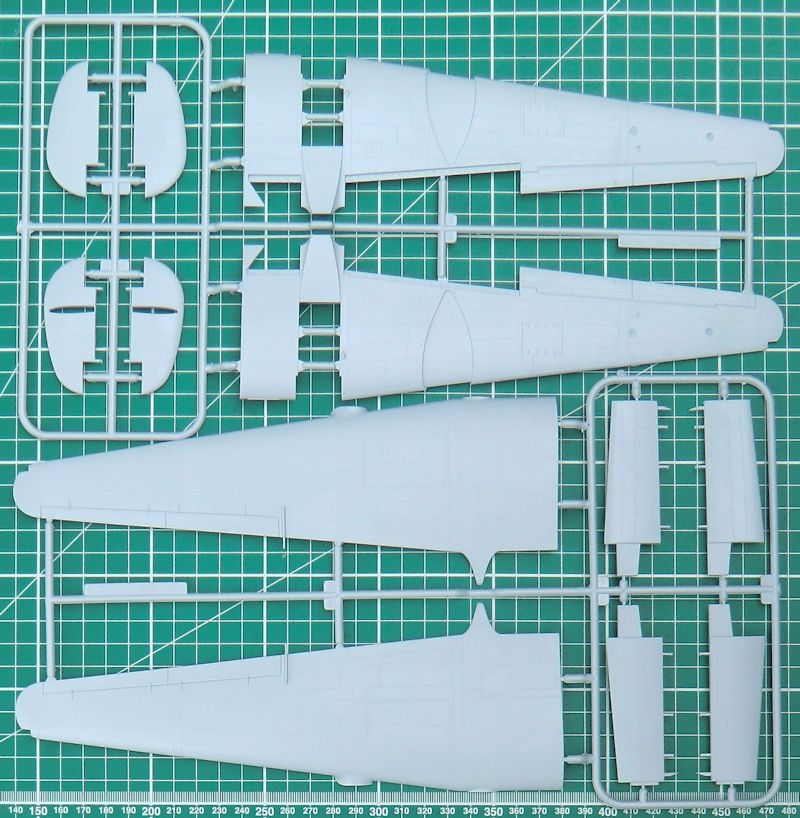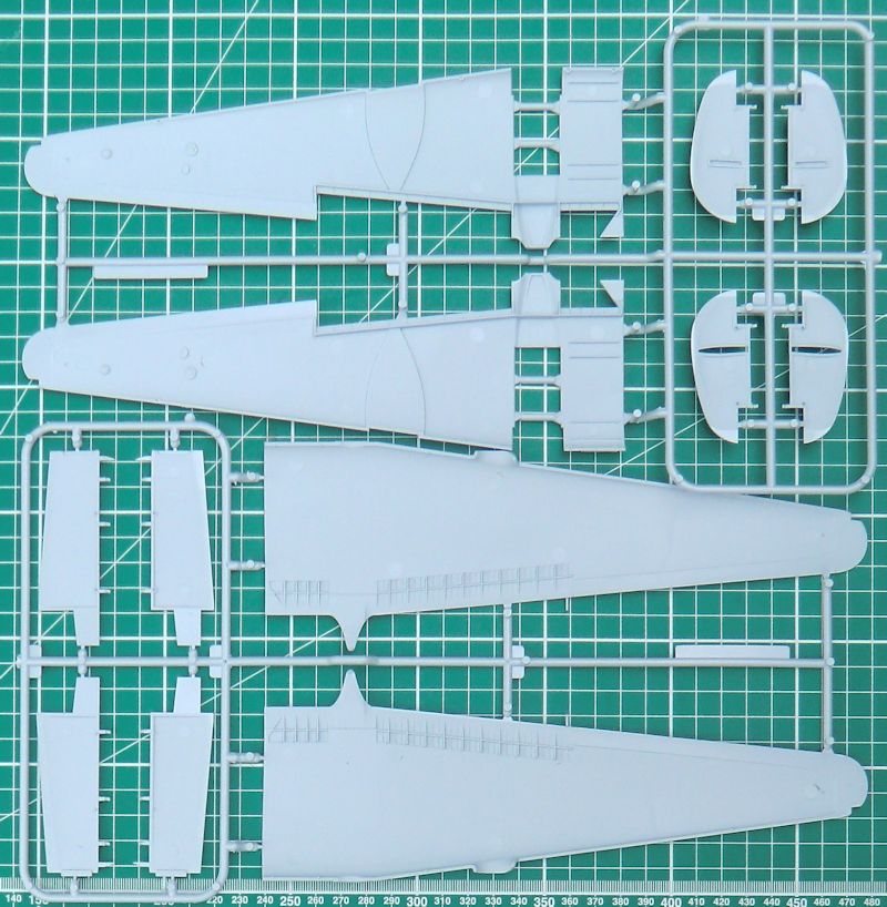 Für die bessere Stabilität der Tragfläche werden zwei stabile Holme eingezogen. Die Landeklappen können alternativ ausgefahren angeklebt werden. Für die Ruder gibt es Teile mit scharfen Hinterkanten. Die Fahrwerksschächte sind ordentlich detailliert. Hier hilft zusätzlich insbesondere eine detaillierte Bemalung. Die Positionsleuchten werden mittels Klarsichtteilen dargestellt.