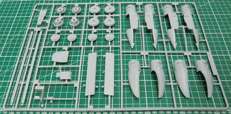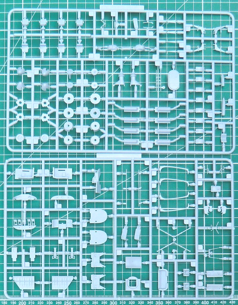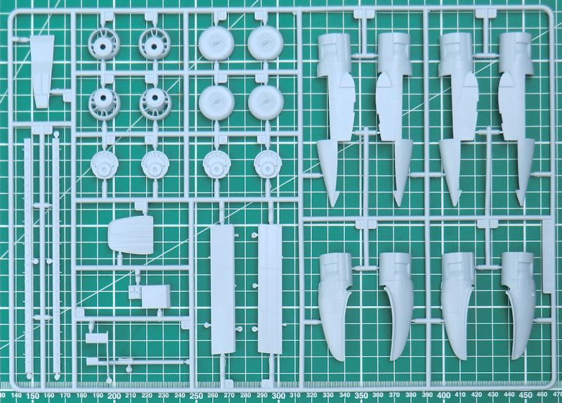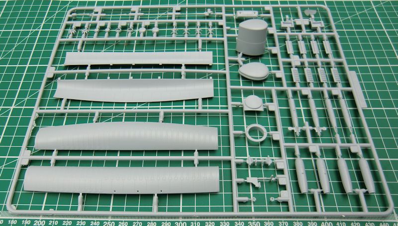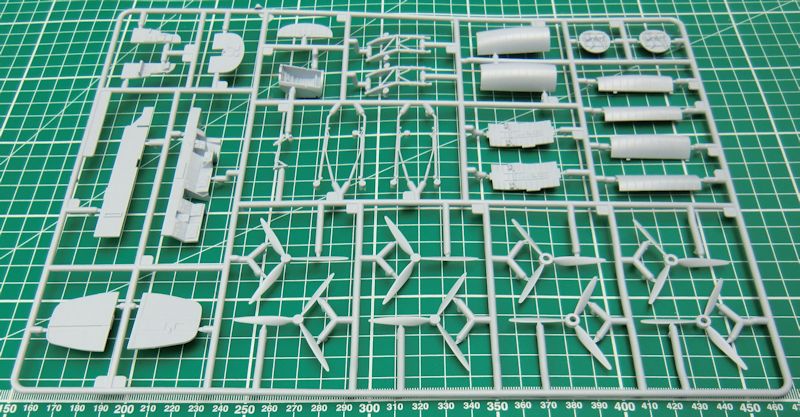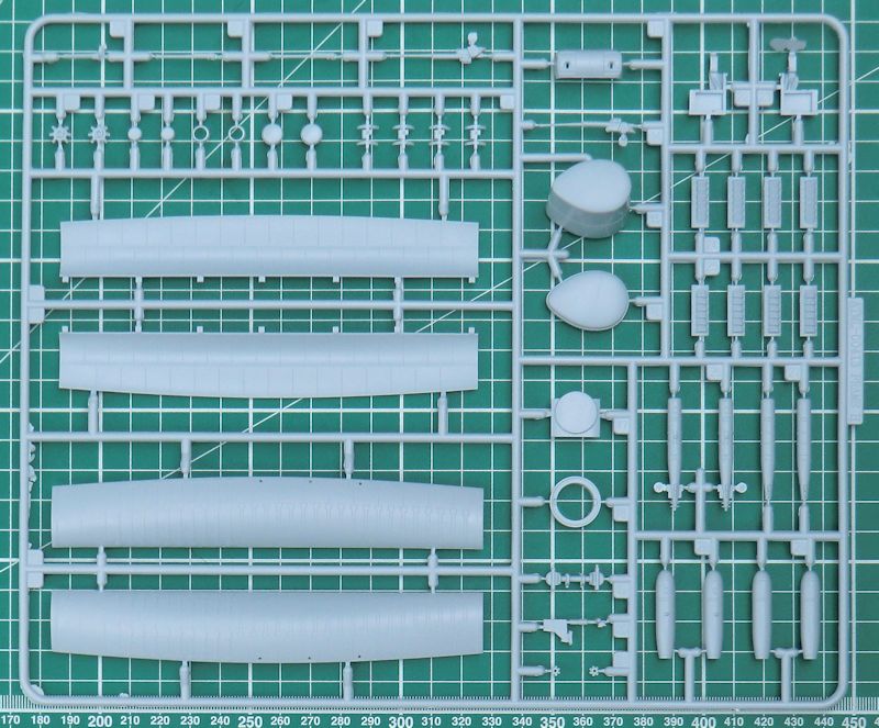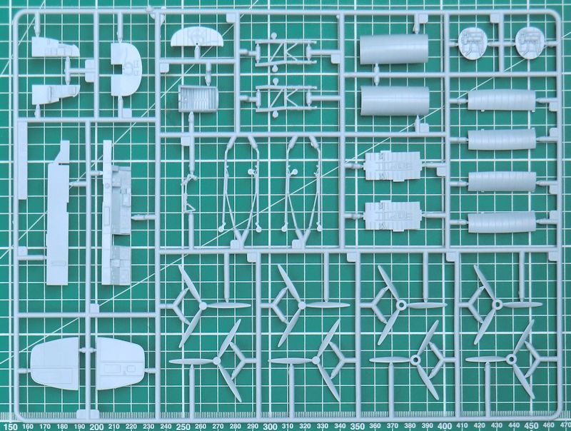 Die Abwehrwaffen sind relativ einfach aber ordentlich. Alle acht Luftschrauben bestehen aus jeweils einem Stück. Die Klarsichteile sind ausreichend dünn.