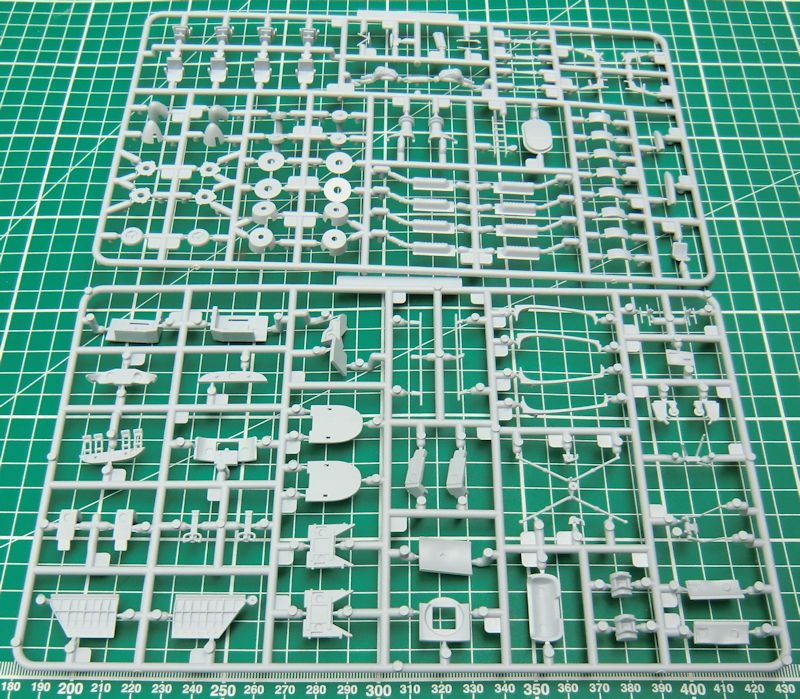 Das Cockpit ist ordentlich ausgestattet. Für das Instrumentenbrett gibt es dein Decal. Eine gute Ausstattung gibt es auch weiter hinten im Rumpf. Die hintere Tür kann offen angeklebt werden. In den sichtbaren Bereichen kann man noch Sitzgurte ergänzen. Beim Bau muss man sich schon früh für eine Decalvariante entscheiden, denn hier gibt es kleine Unterschiede im Bau zu beachten.