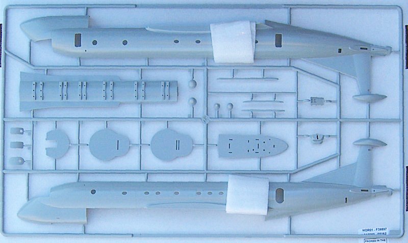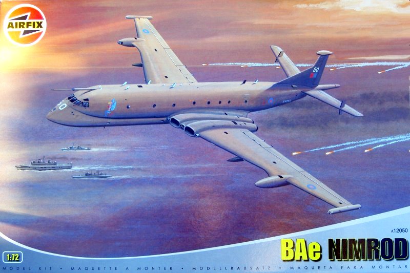 Bausatz: Schon im Jahr 2006 wurde die Nimrod bei Airfix angekündigt. Nun ist sie zu Beginn des Jahres 2008 in der Auslieferung. Der Bausatz soll limitiert sein. Nach dem Neuanfang unter dem Dach von Hornby hat man sich scheinbar mehr Zeit gelassen als mit der TSR. 2. Die Qualität des Bausatzes liegt im Niveau zwischen TRUMPETER und Hasegawa. Gefertigt wurden die Spritzlinge in China. Die Verpackung erfolgt in Großbritannien.