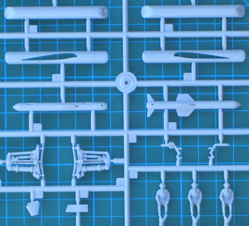 Das Fahrwerk ist recht detailliert und insbesondere die Räder gefallen mir. Interessant ist der große Waffenschacht. Dieser kann reichlich bestückt werden. Die Kabinenfenster müssen von innen einzeln eingeklebt werden. Der Bereich über dem Schacht ist innen leer. Durch die kleinen Fenster ist eh nichts zu sehen. An ein Buggewicht hat Airfix nicht gedacht. Ich empfehle ausreichend Gegengewicht in den Bug verschwinden zu lassen.
