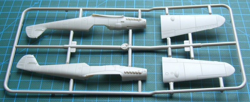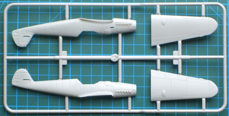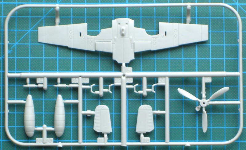 Außen gibt es feine Oberflächendetails und einen gut gelösten Aufbau. Die Tragflächen und das Höhenleitwerk besitzen dank des Aufbaus scharfe Hinterkanten. Nur das Seitenruder ist geteilt. Das Fahrwerk kann in ein- oder ausgefahrener Position eingebaut werden. Dafür gibt es optionale Teile. Auch die Bewaffnung bietet einige Möglichkeiten.