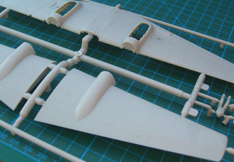 Die Motorgondel auf der Tragflächenoberseite hat kaum etwas mit dem Original zu tun. Sie ist zu lang und zu plump. Hier hat Matchbox vor über 30 Jahren schon viel exakter gearbeitet. Schade, denn das ist so für den Freak nicht akzeptabel. Der "normale Modellbauer" wird nach dem Zusammenbau zweifelsfrei eine Bf 110 C erkennen. Spannend ist nur, dass die Bauanleitung richtige Proportionen der Motorgondel auf der Tragflächenoberseite zeigt...