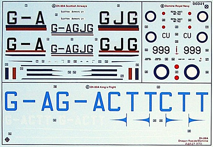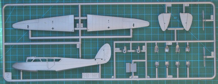 Bausatz: Die DH 89 ist ein alter Bekannter von Heller und bei Airfix erschien der Bausatz kurz vor der Insolvenz in 2006. Inzwischen ist der Kit flächendeckend verfügbar und wird nach der Trennung beider Unternehmen sicherlich nicht noch mal in dieser Form erscheinen. Die drei silbergrauen Spritzlinge stammen aus der Hochzeit des Unternehmens Heller. Sie besitzen feine erhabene Strukturen. Die Details sind ordentlich wiedergegeben. Schön sind auch die Glasteile, die diesen Namen wirklich verdienen. Für die Kabine gibt es eine Grundausstattung. Einzig im Cockpit lohnt es sich ein paar Gurte und Details hinzuzufügen. Bei der Passagierkabine selbst bringt die Mehrarbeit kaum was, sofern man nicht die Kabinentür öffnet. Für die Verspannung dieses Doppeldeckers gibt es eine gute Anleitung, die auch für den fortgeschrittenen Modellbauer hilfreich ist.