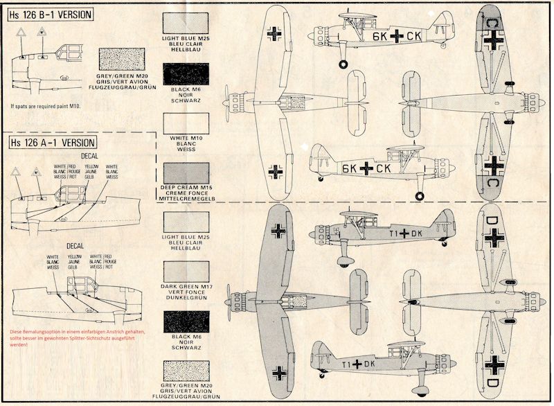Bausatz: Unter den Neuheiten 1977 befand sich auch ein Hs 126 Bausatz von Airfix. Dies war insofern erstaunlich, da erst wenige Jahre zuvor ein Modell von Italaerei und kurze Zeit später von Matchbox herausgekommen war. Betraten diese meist erst nach dem traditionellen englischen Hersteller die Bühne um seine Bausätze durch bessere zu ersetzen, verhielt es sich hier genau umgekehrt.