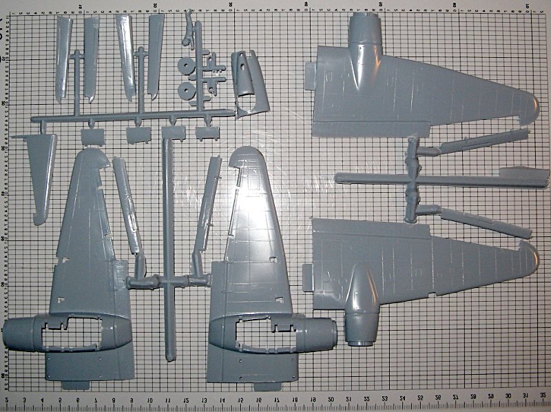Auch der bloße Einzelteile-Umfang (125!), ist zweifelsohne für solch ein betagtes Produkt erstaunlich hoch. Obgleich von dieser Zahl ein gewisser Teil auf die beweglichen Ruderflächen, die ja aus weiteren Einzelteilen montiert werden müssen, entfällt. Außerdem bestehen bei diesem Airfix-Bausatz auch die Räder des Hauptfahrwerks aufgrund separater Felgen, jeweils aus vier Teilen! Als weitere Besonderheit wären noch die jeweils als zusätzliche Teile beiliegenden hinteren Fahrwerksklappen, die es nicht einmal bei Italeri gibt, anzuführen.