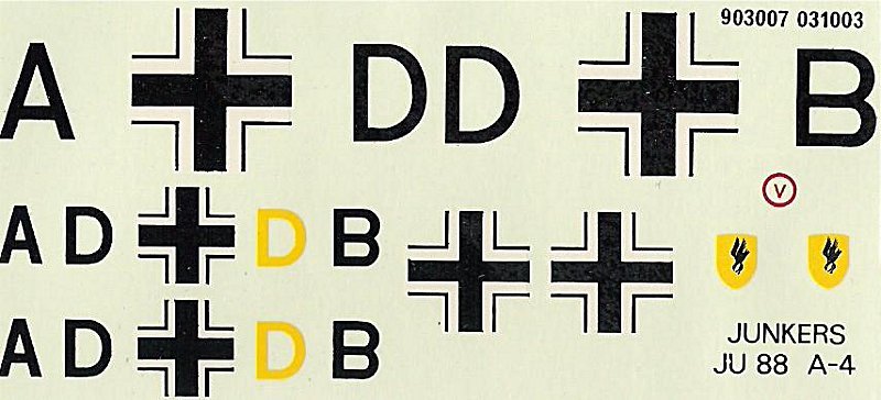 Die am separaten Seitenruder vorhandene, das Ausgleichsgewicht repräsentierende, kleine Verlängerung der Ruderfläche ist ebenfalls etwas problematisch, entspricht sie doch eindeutig der A-4-Baureihe, während aber der Rest des Bombers viel mehr an ein A-5-Flugzeug erinnert. Wofür nicht nur die fehlenden, ausgebeulten Verkleidungen der Lader am Boden der Triebwerksgondeln sprechen (die bei Revell ausgebildet waren), sondern auch das im unteren Bugbereich eingebaute MG 131 und schließlich auch noch die eher als "schmal" zu bezeichnenden Propellerblätter, welche eher auf VDM-Luftschrauben -Nachbildungen schließen lassen, die für die Ju88A-5 typisch waren. Airfix hat für diese zumindest separate Spinner beigefügt.