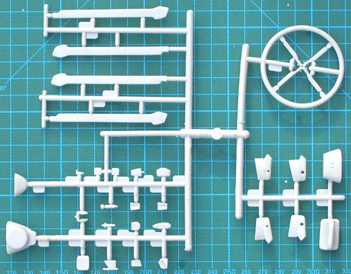 Dieser neue Spritzling ist separat in einer Tüte eingeschweißt und besitzt auch eine andere Kunststofffarbe. Er enthält alle für den Bau einer späten Sea Lynx erforderlichen Teile. Diese sehen recht ordentlich aus. Den hellgrauen „alten“ Bausatzteilen sieht man das Alter von gut 30 Jahren schon an. So ist das Cockpit recht einfach ausgestattet und es gibt nicht mal ein Decal für das Instrumentenbrett. Auch die restliche Kabine ist recht einfach ausgestattet. Wer die Schiebtüren offen montieren möchte, der sollte sich zuerst im Innenraum austoben. Bei der Montage des Bugs gilt es auf die jeweilige länderspezifische Version zu achten. Immerhin enthält der neue Spritzling auch ein paar Antennen. Der Decalbogen ist recht umfangreich und enthält auch ein paar Wartungshinweise. Der Bogen ist für die deutsche Marineversion nicht brauchbar. Hierfür gibt es aber auf dem Zubehörmarkt genug Alternativen. Airfix sollte die Decalqualität in Zukunft in den Griff bekommen. Ich bin auf die ersten Bausätze „Made in China“ gespannt.