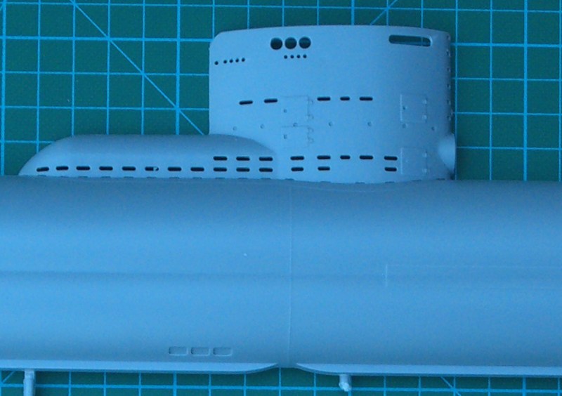 Das ALANGER U-Boot ist deutlich länger und einige Details sehen anders aus. Bei ALANGER hat man die Unterlagen ausgewertet, die die Sowjetunion 1945 erbeutet hatte. Die Höhe des Rumpfes ist so perfekt übereinstimmend, dass man das Vertrauen zum ALANGER-Bausatz zurückgewinnt. Ebenfalls stimmt der gesamte Heckbereich um die Schraube überein. Dafür unterscheidet sich wieder der Turm in Details und in der Länge des hinteren Bereiches.