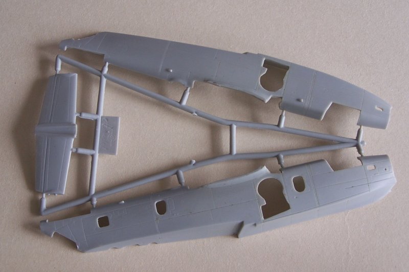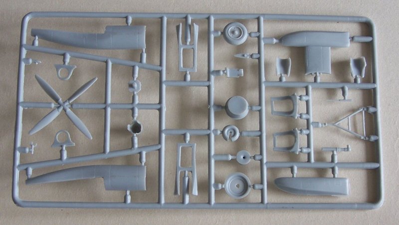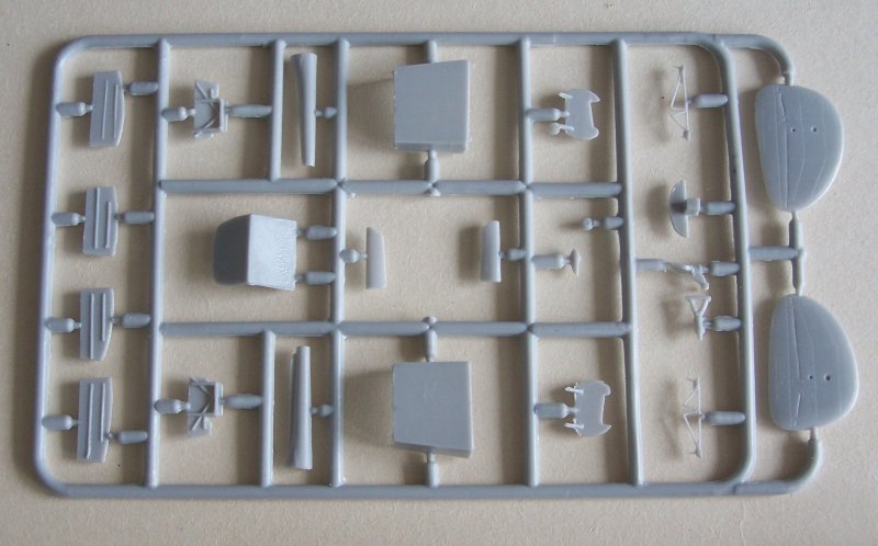 Die Teile: Es handelt sich um einen für Amodel typischen Spritzgussbausatz. Alle Teile sind mit feinen Gravuren versehen. Passzapfen fehlen generell. Inneneinrichtung für das Cockpit ist dabei, die Teile lassen verschiedene Optionen beim Bau zu. Ergänzt wird der Bausatz durch einen Ätzteilesatz zur besseren Detailierung.