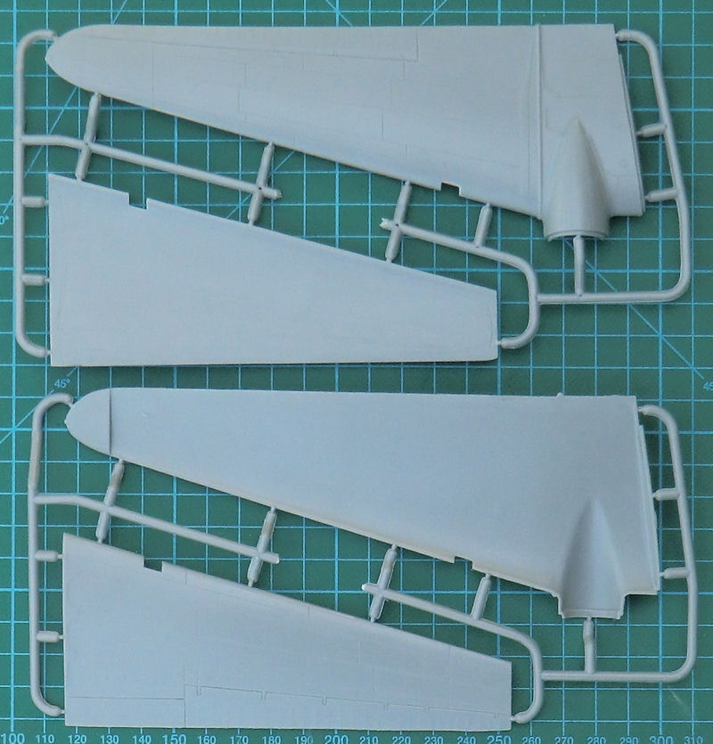 Im Inneren gibt es eine solide Ausstattung. Im Cockpit ist alles vorhanden, jedoch gibt es noch genug Potential zum Nachdetallieren. In der Hauptkabine gibt es einen Boden und Trennwände. Als separates Teil liegt die Ladeluke bei. Hier gibt es auch ein Alternativteil für die Restekiste. Die beiden Motoren sind durchaus brauchbar. Gut gelöst hat Amodel den Aufbau des Höhenleitwerks. Hier sind scharfe Hinterkanten garantiert.